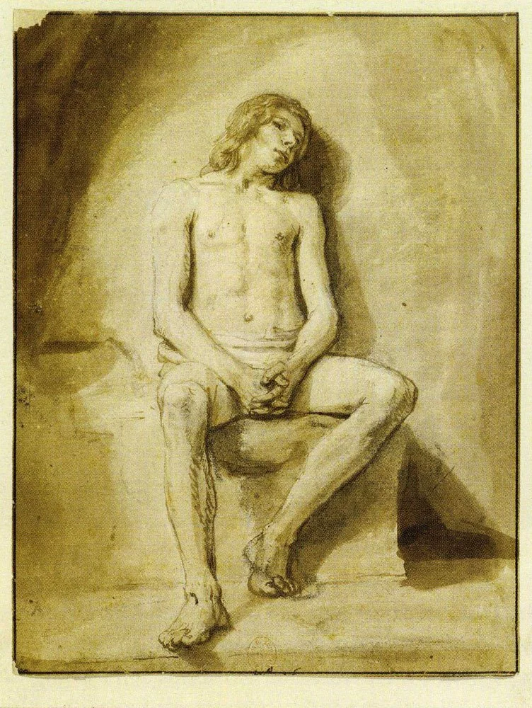 Left Image: Charles-Antoine Coypel (1694–1752) after Samuel Van Hoogstraten (1627–1678), Étude d’homme assis, École Nationale Supérieure des Beaux-Arts, Paris, inv. no.: 10995