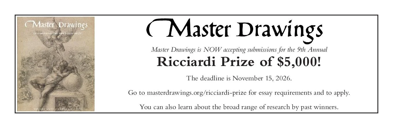 Turning to this month’s magazine, we have news headlines, gallery listings, announcements, events and an overview of recent institutional acquisitions. For our Drawing of the Month, Jane Simpkiss, curator of Bruegel to Rembrandt: Drawing Life, Sketching Wonder shares a personal highlight from the exhibition at Compton Verney. For this month’s Demystifying Drawings interview, Olenka Horbatsch and Charlotte Wytema reflect on their 5-year research project and forthcoming exhibition on early Netherlandish drawings at the British Museum, and in the Review section, Emma Holter visits Drawn to Venice at the Legion of Honor, San Francisco. After the month’s exhibition listings and the Real or Fake quiz, the issue concludes with a trio of audio, video and literary recommendations.