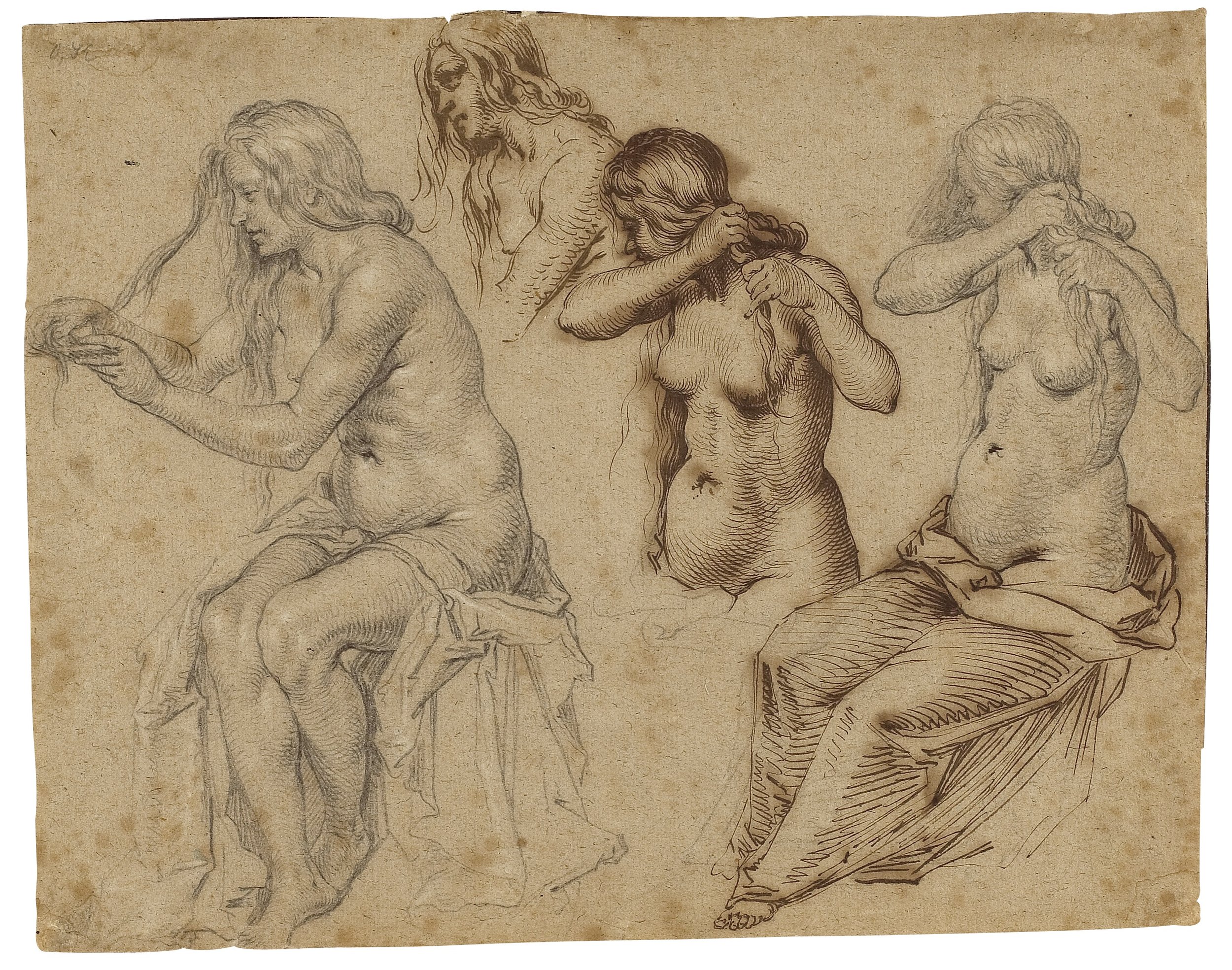 Four studies of a nude woman combing her hair, 1602–1603